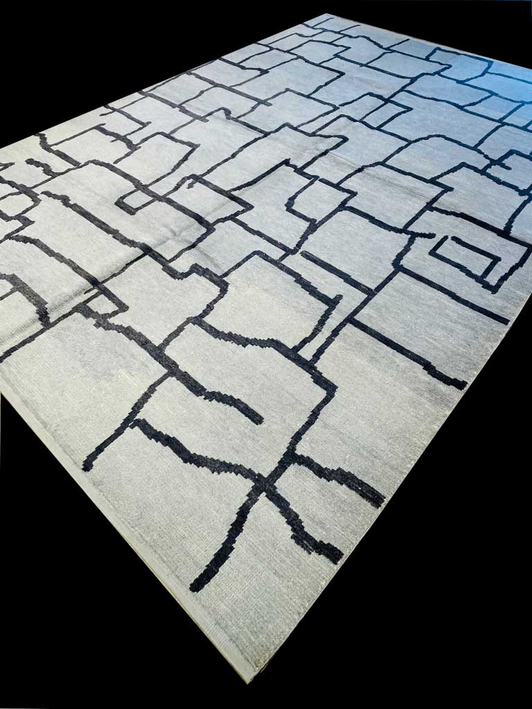 This handwoven Berber rug features a beautiful bold pattern that makes a statement in your living spaces. Â Made from high quality wool and cotton, it brings warmth and elegance to your home or office space. The design is versatile and can match a variety of furnishings, while its neutral palette works seamlessly with contemporary interiors.