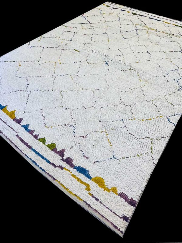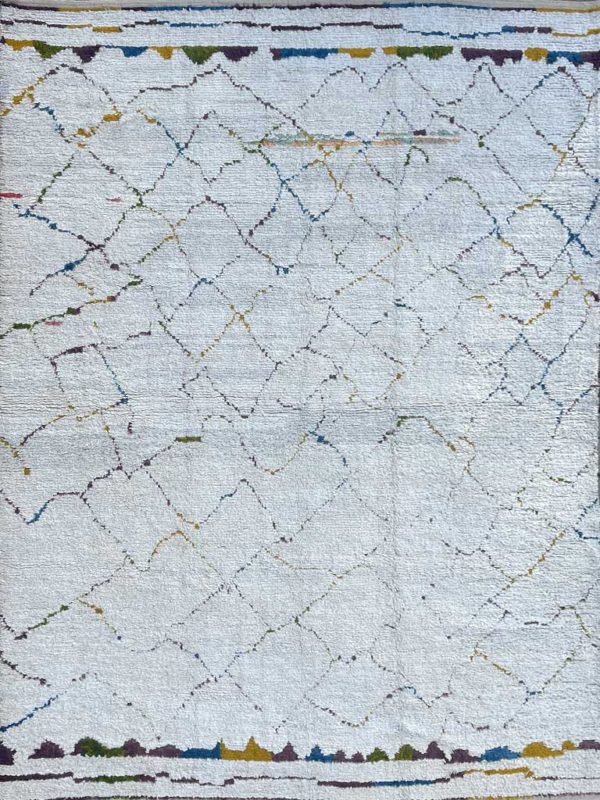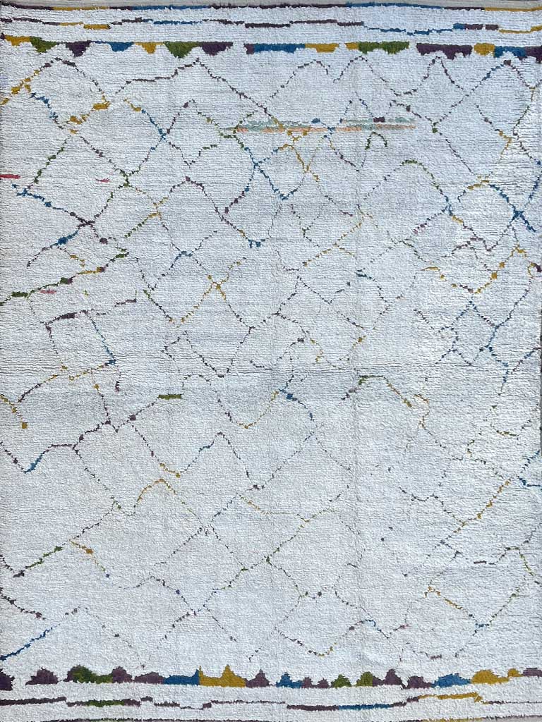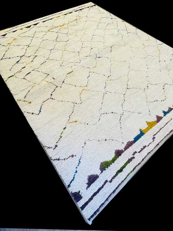 This unique Berber rug features a multiple colors and a signature tribal pattern of Moroccan rugs. Â Made from high quality wool and cotton, it brings warmth and elegance to your contemporary or eclectic spaces. The design is versatile and can match a variety of furnishings, while its colorful palette brings life to your interiors.