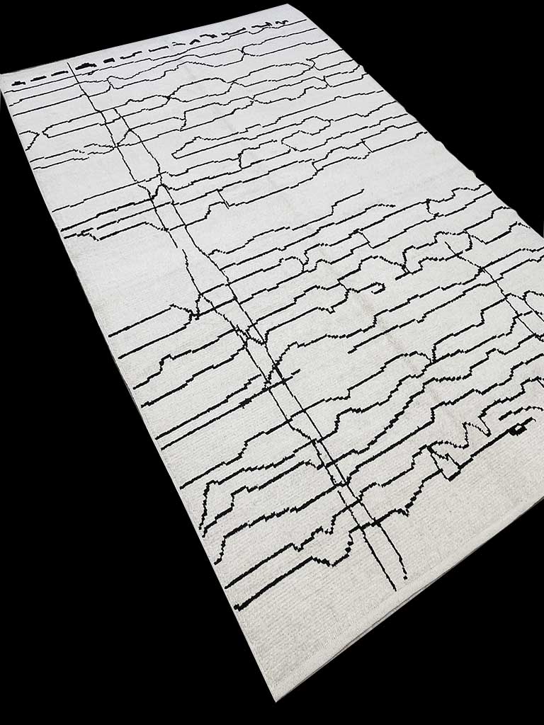 This handwoven Berber rug features distinctive broken lines on a neutral backdrop. Made from high quality wool and cotton, it brings warmth and elegance to your home or office space. The design is unique and attractive, while its neutral palette works seamlessly with contemporary interiors.