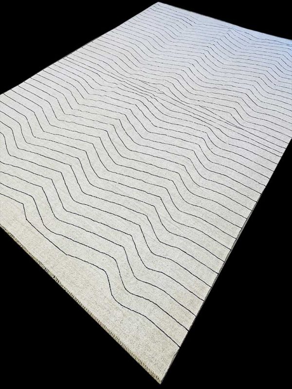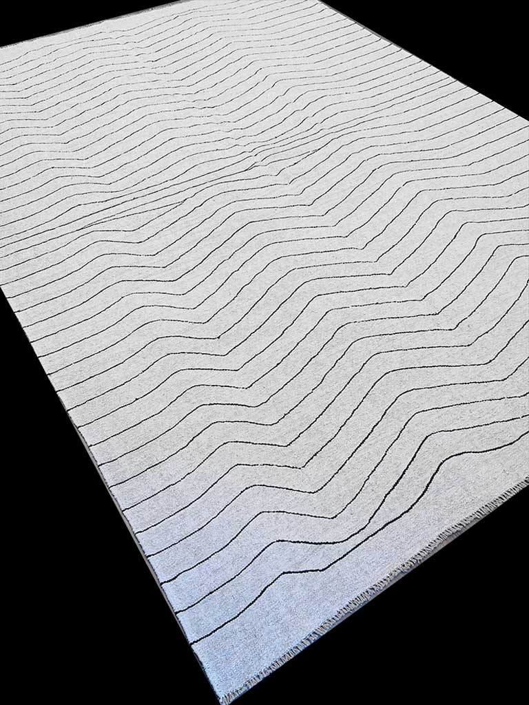 A modern berber-style kilim in neutral tones is the perfect way to add a touch of texture and style to your home. It is handmade with a traditional kilim flat-weave and features a neutral tones as well as a zig-zag stripe design that will work well in a contemporary setting. It is also durable and easy to care for.
