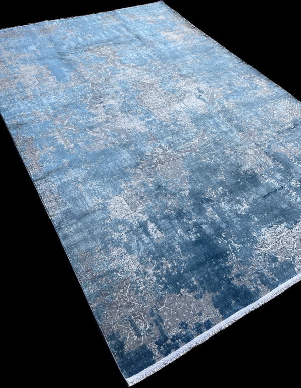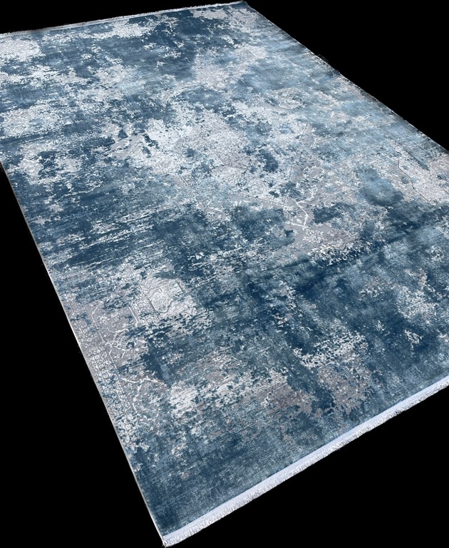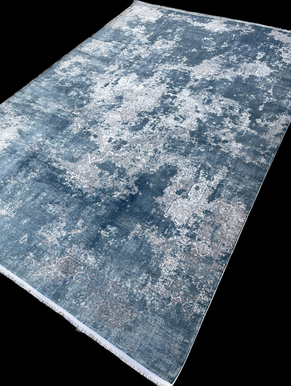 The rich blue color and muted pattern of this trendy modern carpet make a statement. The gray undertones make the carpet extremely versatile in a contemporary setting, while its abstract design brings depth and sophistication.