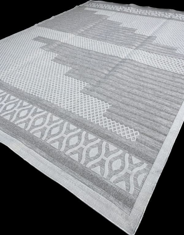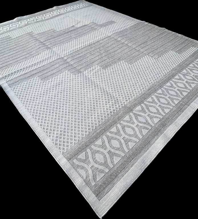 This modern flat-weave rug is both beautiful and durable, featuring a simple design with neutral tones. It is versatile, easy to clean, and therefore suitable for a variety of settings from bedrooms to kitchen spaces.