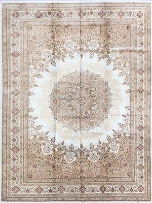 Classic design carpet. Made of bamboo silk with central medallion design. Very soft and shiny. Ideal for a luxury living. Design inspiration from old Persian carpet.