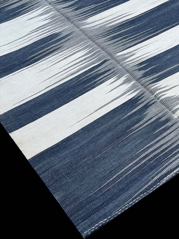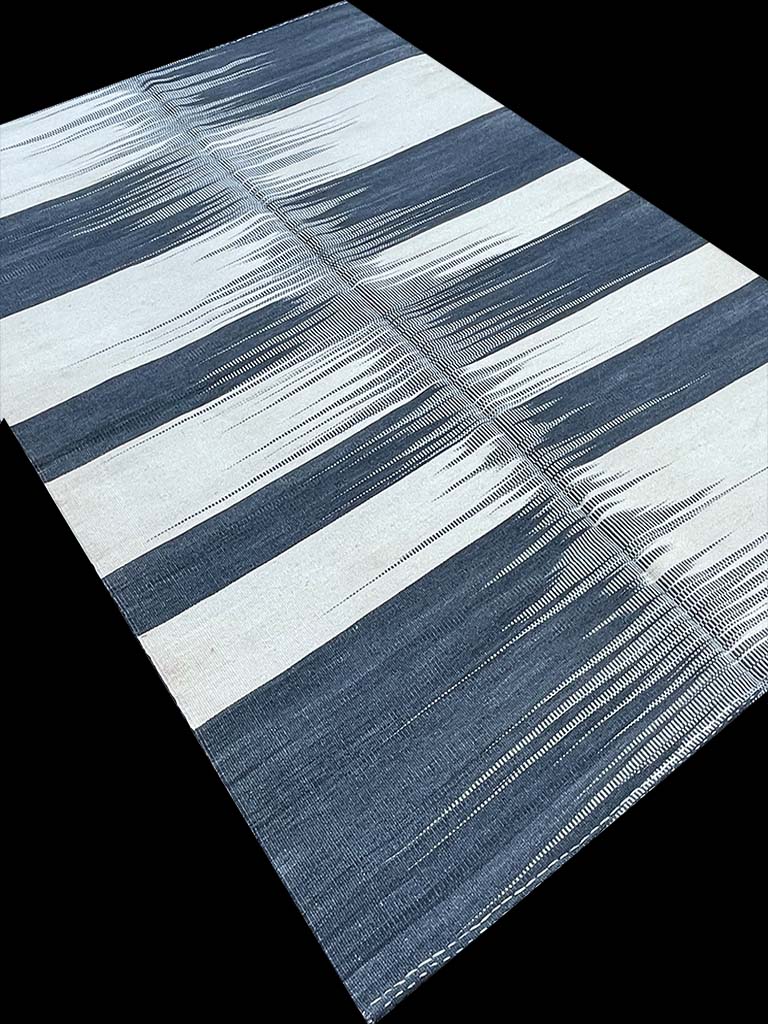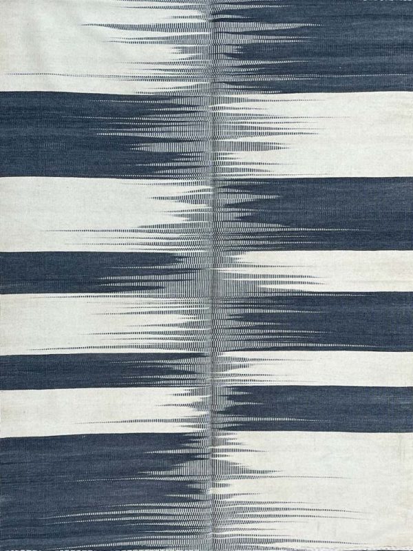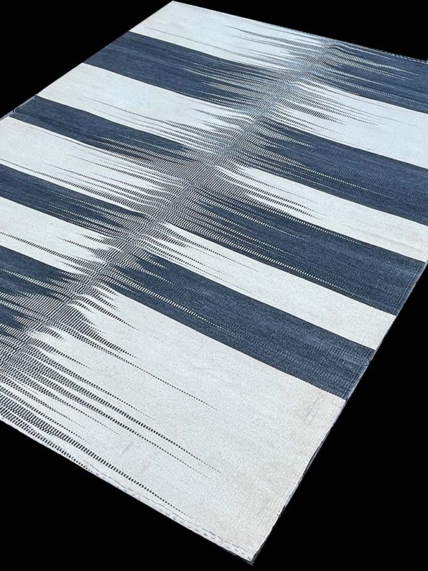 Transform your contemporary space into a sophisticated haven with the Mazandaran Kilim, a stunning handwoven rug that exudes character and style. With its captivating design of thick charcoal gray and off-white stripes, along with the signature Mazandaran-style central pattern, this rug is truly a one-of-a-kind piece of art. Crafted from high-quality wool, this unique  Mazandaran kilim rug is both beautiful and durable, making it the perfect addition to any interior design scheme, from the living room to the office