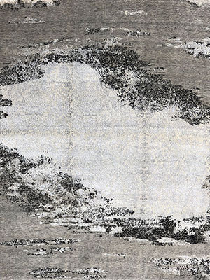 This is a beautiful, hand-knotted bamboo silk and wool carpet that would be perfect for your living room or entrance. It has a contemporary asymetrical design in earth colors, and is made in India with two levels of knotting. The silk is kept higher than the wool to give it an attractive shiny look in the middle.