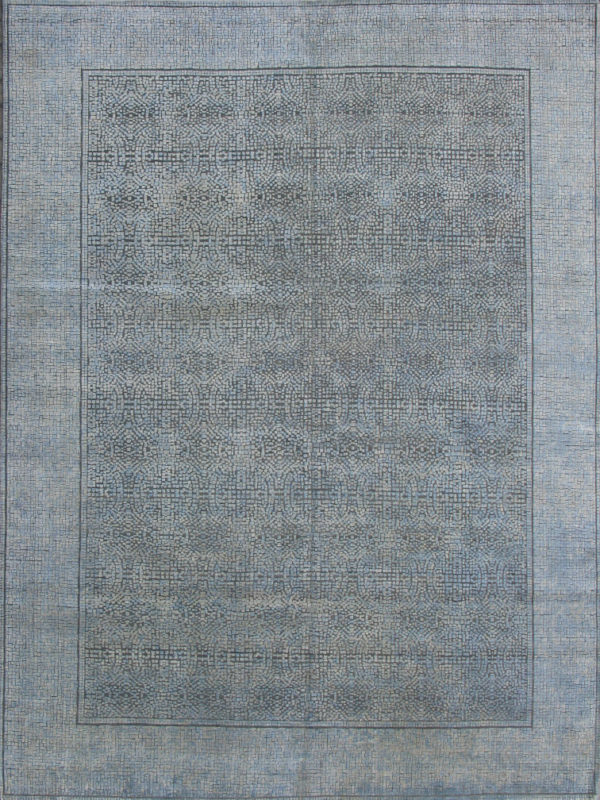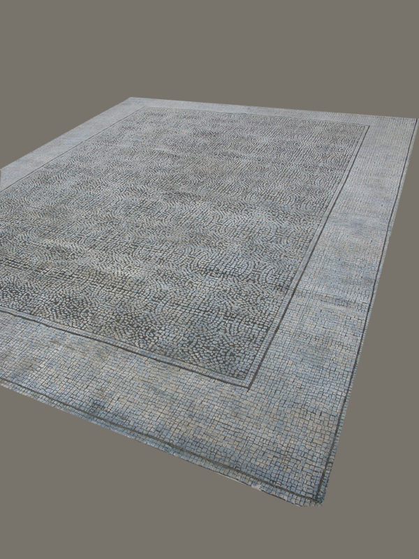 A true piece of art, this luxury modern rug is inspired by mosaics. With a border and subtle tiled pattern, it combines silk and wool in green, blue, and white. It is handmade in India at the hands of the finest craftsmen and offers excellent quality and durability. The dominant neutral tones of this contemporary carpet make it ideal for a multitude of modern spaces, as a compliment to your furniture or as the star piece.