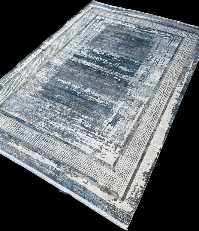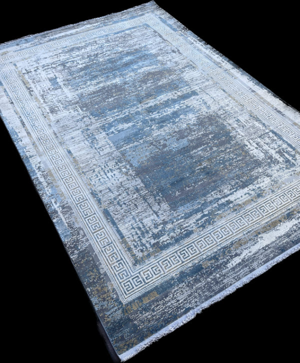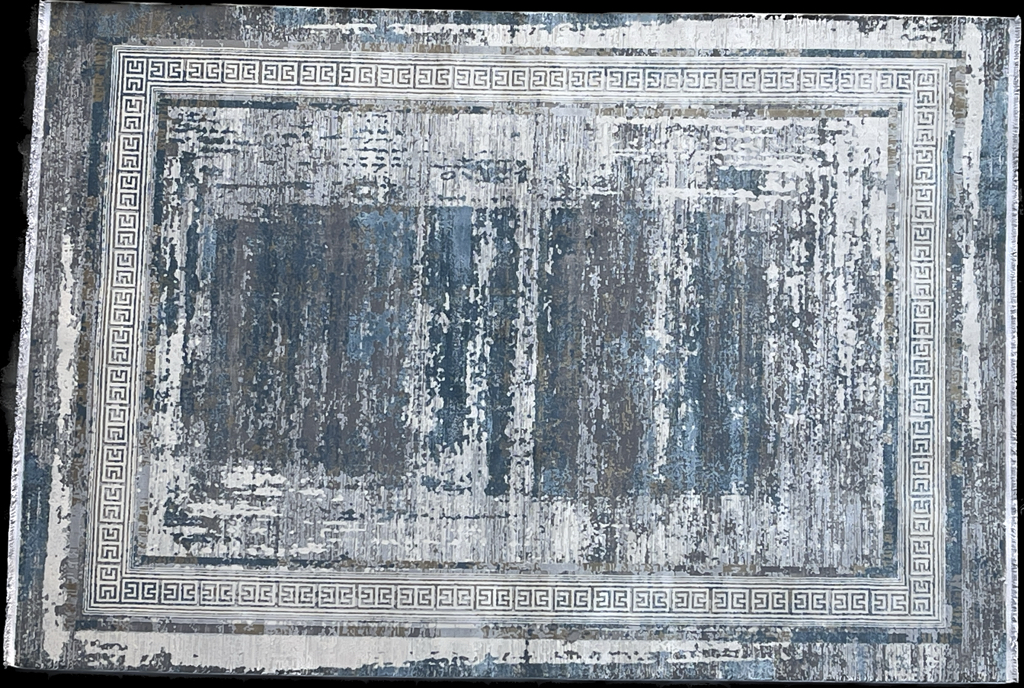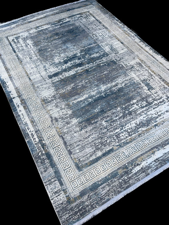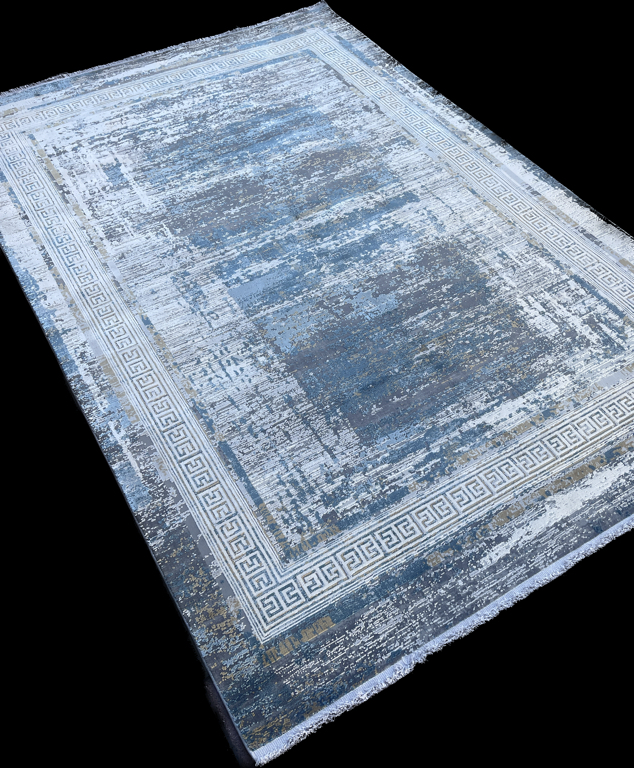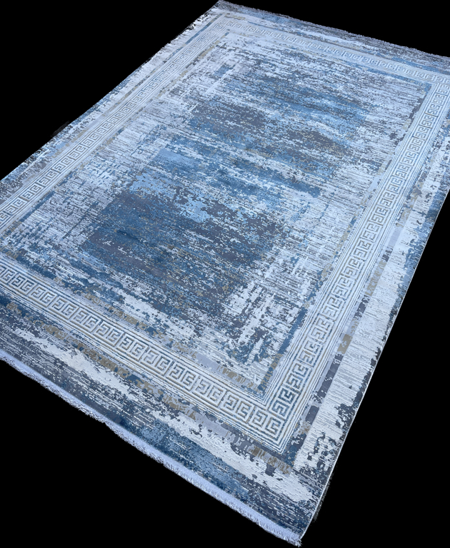 With its  abstract design, geometric border and elegant blue color,  this modern rug makes a bold statement in any contemporary setting. Its unique design and luxurious texture make it ideal for the modern living room.