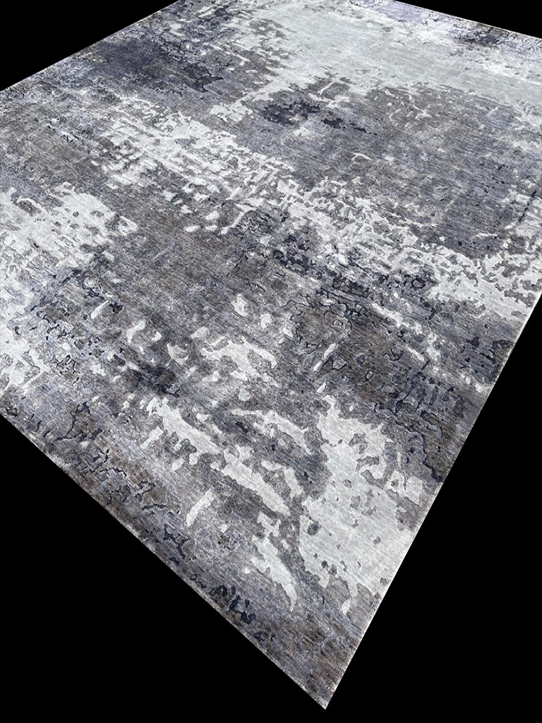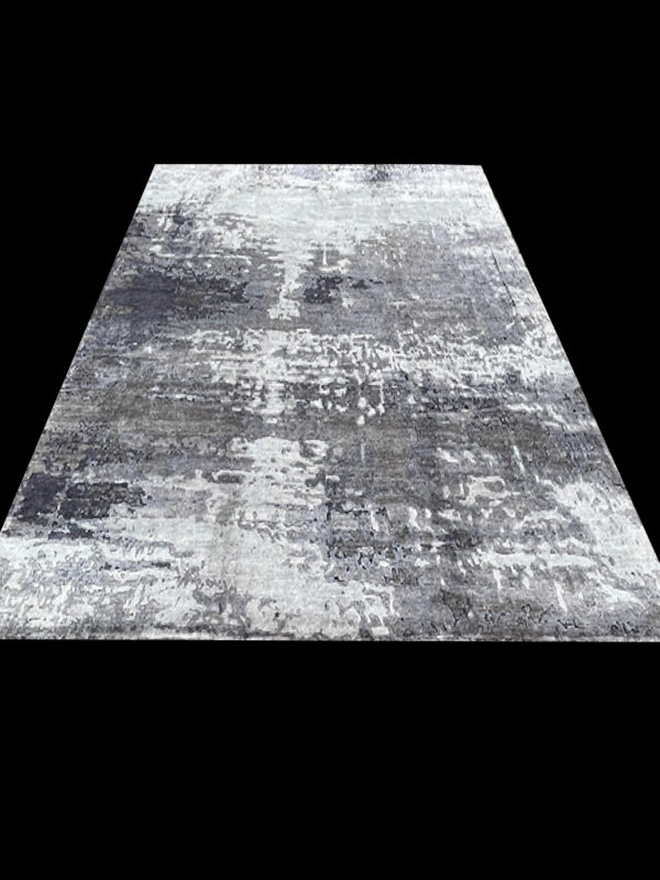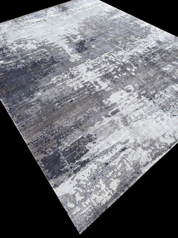 Give your home a truly elegant touch with this hand-knotted contemporary rug. It features an abstract design that elevates your home decor and brings it to life in high style. The blue, silver, and gray colors make for a perfect complement to any modern interior.