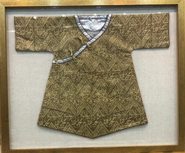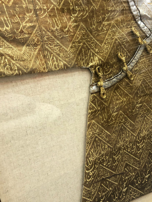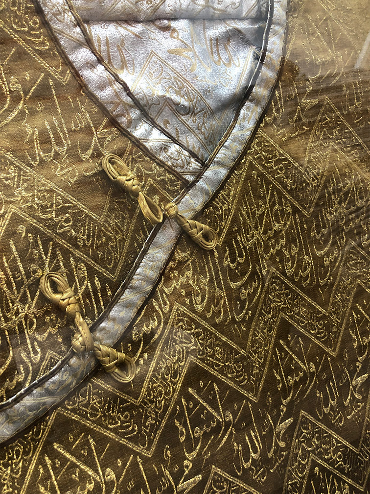 The Talismanic Shirt is a unique piece of Islamic art. The shirt is adorned with Arabic calligraphy of The Prophet’s name as well as verses from the Quran. The talismanic symbols sewn into the fabric are said to safeguard the wearer from any potential danger, as well as endow them with the courage and strength required in difficult times.