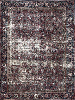 This hand-knotted vintage rug is a true masterpiece. It is an original authentic old Persian carpet, reimagined for the modern home. The designers have taken great care to maintain the original colors and patterns of the vintage rug while adding a modern twist for your contemporary interiors.