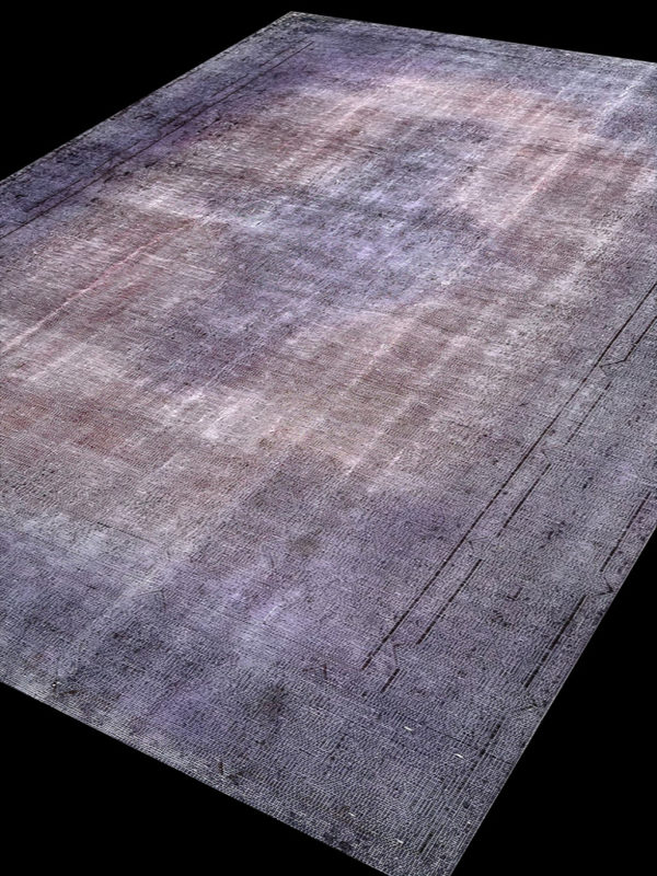 This is a re-dyed vintage Persian rug that adds a new touch to the exisiting art. The rug is a perfect statement and will make a great decorative element in contemporary decor.