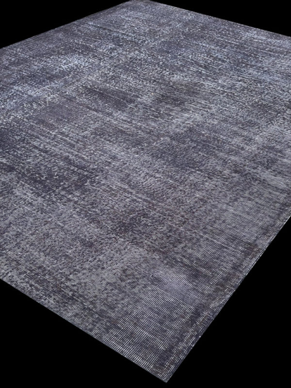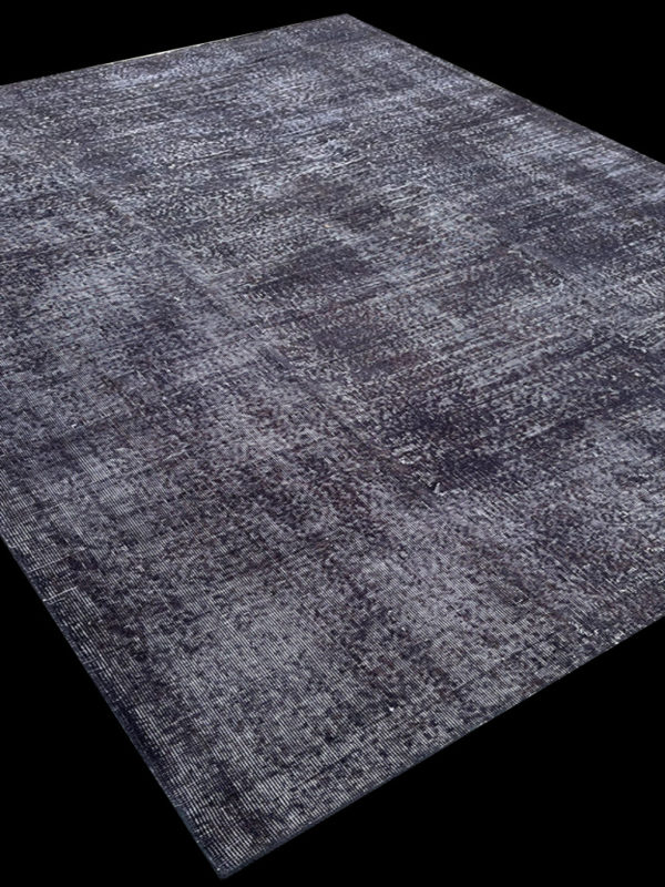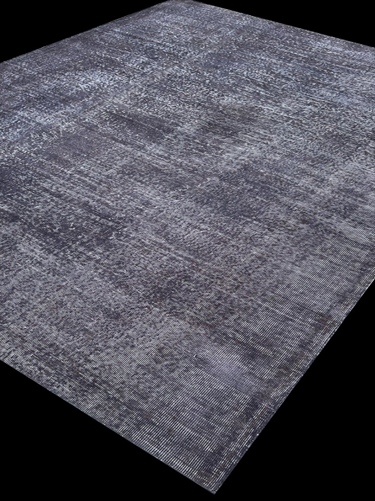 This antique Persian rug has been completely transformed to make a modern carpet. The wool and cotton has been bleached and over-dyed to create a monochromatic gray piece, which matches a range of contemporary interiors. If you look closely, you can see that the rug has mildly retained some of its old pattern.Â
